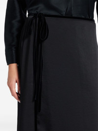 velvet-trim midi skirt Highlights - Black - Side tie fastening - Wrap design - Side slit Made in United States Composition Polyester 100%