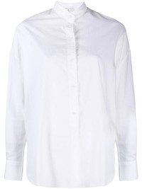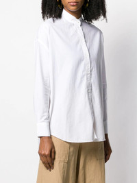 silk blend shirt White cotton silk blend shirt from Vince featuring a grandad collar, a front button placket, long sleeves and a straight hem. Imported Composition Cotton 86%, Silk 14% SIZE & FIT Model measurements Height 5 ft 11 in(1.8 m) Bust/Chest 31.49 in(80 cm) Hips 35.82 in(91 cm) Waist 24.8 in(63 cm) Washing instructions Machine Wash