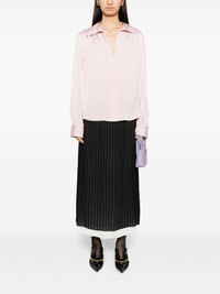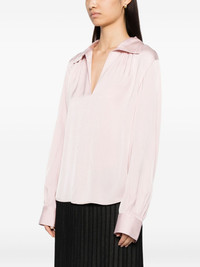 smocked blouse Highlights - Light pink - V-neck - Long sleeves Imported Composition Silk 55%, Viscose 38%, Spandex/Elastane 7% SIZE & FIT Model measurements Height 5 ft 10 in(1.78 m) Bust/Chest 29.52 in(75 cm) Hips 34.25 in(87 cm) Waist 24.4 in(62 cm) FittingInformation Designed to be unstructured, offering a loose fit throughout Made from a midweight stretch fabric, this piece offers elasticity and flexibility when worn Washing instructions Hand Wash