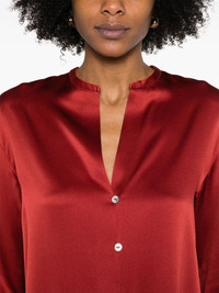 silk shirt Highlights - Brick red - Front button fastening - Buttoned cuffs - Round split neck - Pleat detailing Imported Composition Silk 100% SIZE & FIT Model measurements Height 5 ft 11 in(1.8 m) Bust/Chest 32.67 in(83 cm) Hips 35.82 in(91 cm) Waist 25.98 in(66 cm) FittingInformation Designed to be unstructured, offering a loose fit throughout Made from a lightweight non-stretch fabric