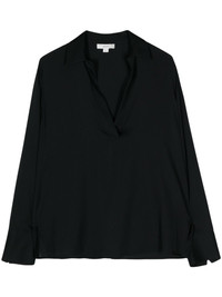 silk v-neck blouse Highlights - Black - Silk - V-neck - Band collar - Buttoned cuffs - Long sleeves - Curved hem Imported Composition Silk 92%, Spandex/Elastane 8%