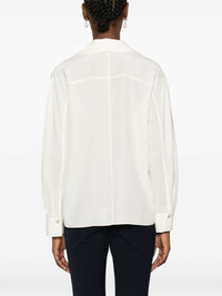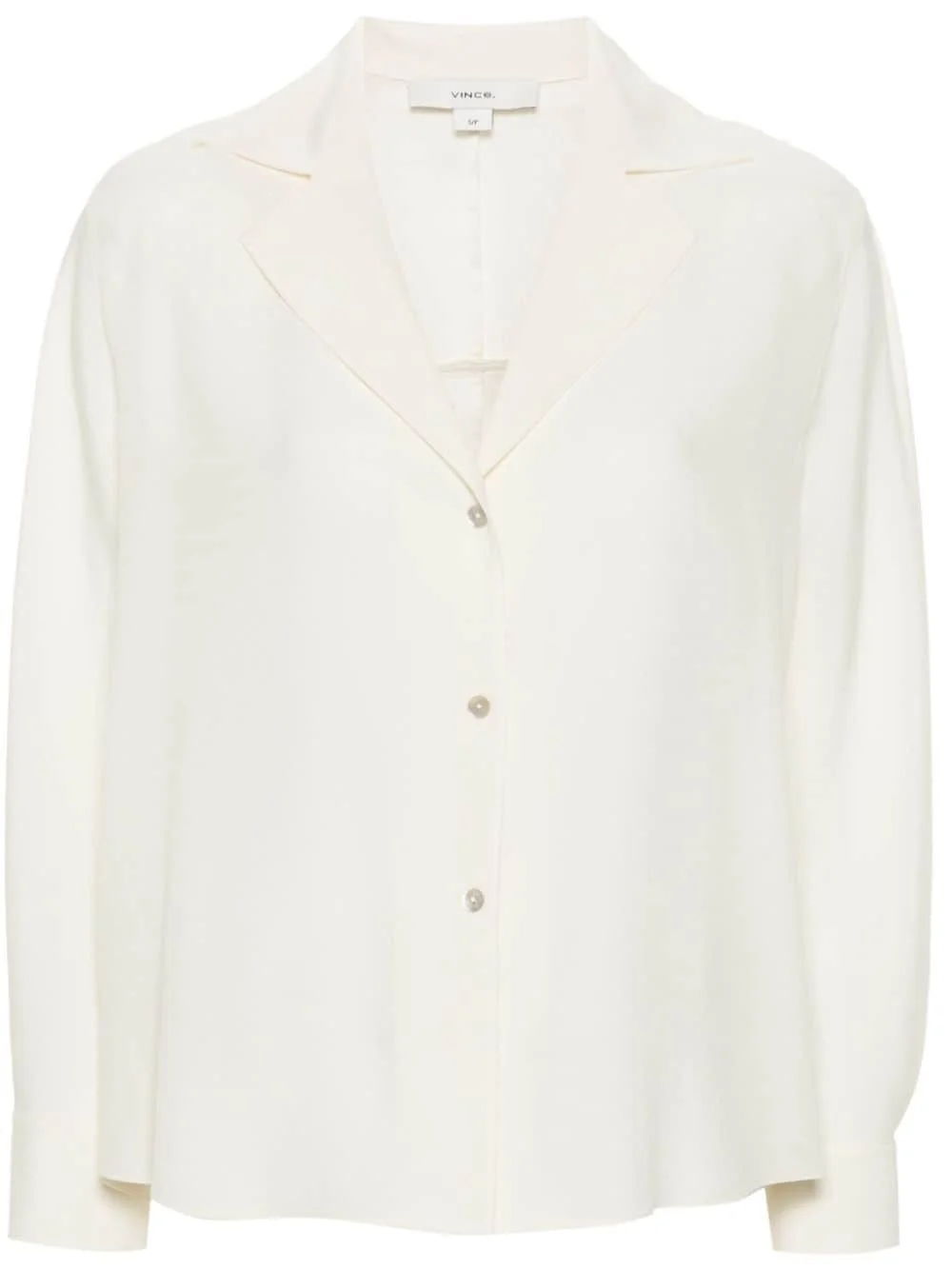 semi-sheer silk shirt Highlights - Light beige - Silk - Semi-sheer construction - Camp collar - Front button fastening - Long sleeves - Buttoned cuffs - Curved hem Imported Composition Silk 100% SIZE & FIT Model measurements Height 5 ft 10 in(1.77 m) Bust/Chest 29.92 in(76 cm) Hips 34.25 in(87 cm) Waist 23.62 in(60 cm) FittingInformation Designed to be unstructured, offering a loose fit throughout Made from a lightweight non-stretch fabric This piece fits true to size – take your usual size
