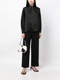 silk long-sleeve blouse Highlights - Black - Silk - Satin finish - Pointed flat collar - Short front zip fastening - Long sleeves - Straight hem Imported Composition Silk 100% SIZE & FIT Model measurements Height 5 ft 10 in(1.77 m) Bust/Chest 28.74 in(73 cm) Hips 35.82 in(91 cm) Waist 24.4 in(62 cm) FittingInformation Designed to be unstructured, offering a loose fit throughout Made from a lightweight non-stretch fabric This piece fits true to size – take your usual size Washing instructions Hand Wash