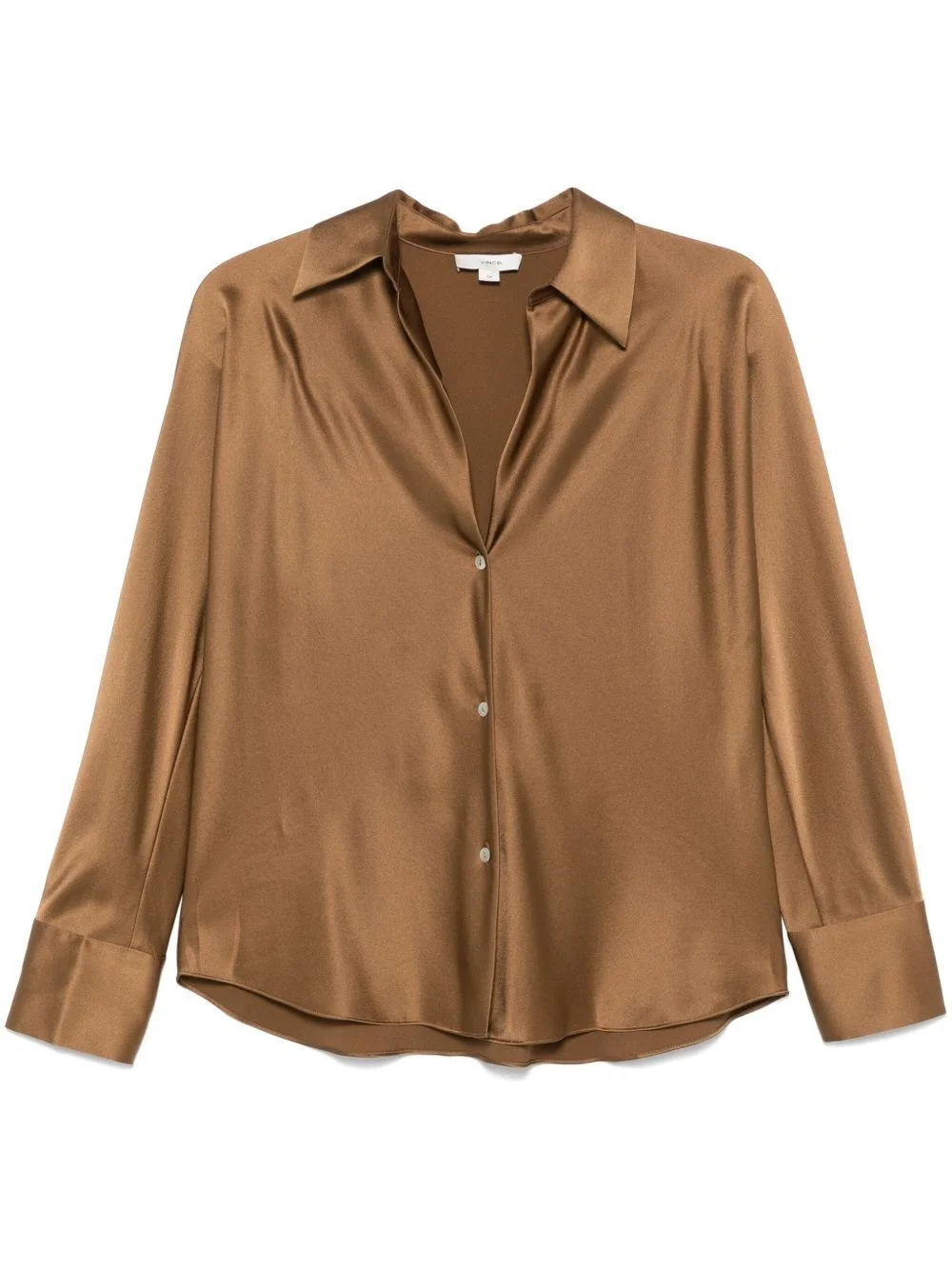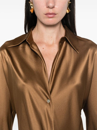 satin shirt Highlights - Almond brown - Silk - Satin weave - Front button fastening - Mother-of-pearl buttons - Pointed flat collar - Split neck - Long sleeves - Buttoned cuffs - Straight hem Imported Composition Silk 100% SIZE & FIT Model measurements Height 5 ft 10 in(1.78 m) Bust/Chest 33.46 in(85 cm) Hips 36.22 in(92 cm) Waist 23.22 in(59 cm) FittingInformation Designed for a relaxed fit, this piece allows for comfort and movement when worn Made from a lightweight non-stretch fabric