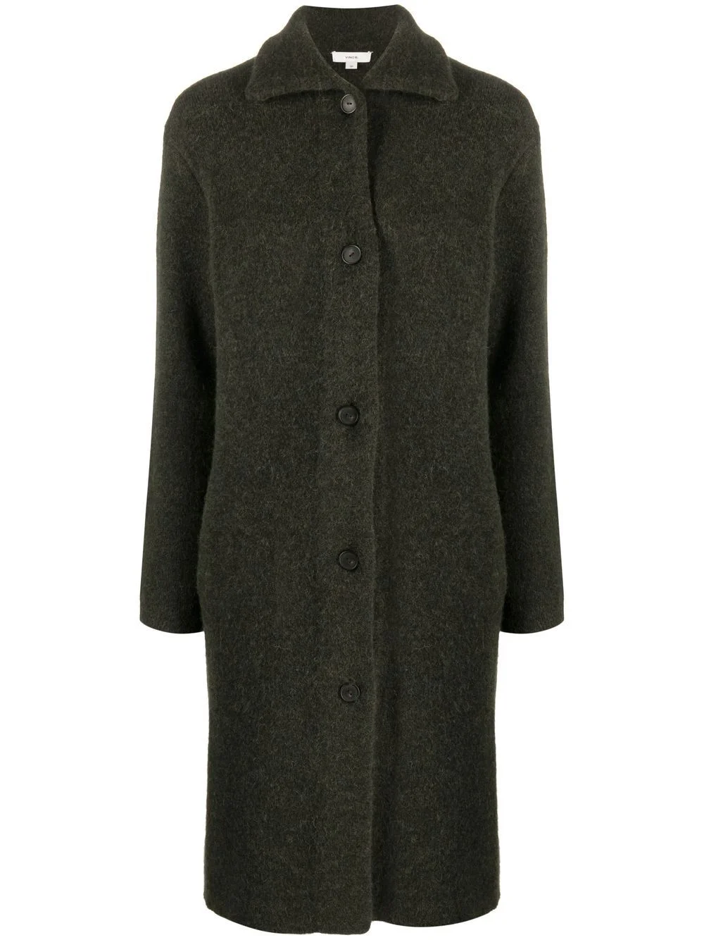 single-breasted cardigan coat A seasonless essential in a wool-alpaca blend, this cardigan coat by Vince is cut with slightly dropped shoulders and an exaggerated collar. Imported Composition Wool 36%, Nylon 26%, Alpaca Wool 18%, Viscose 18%, Spandex/Elastane 2% Washing instructions Hand Wash