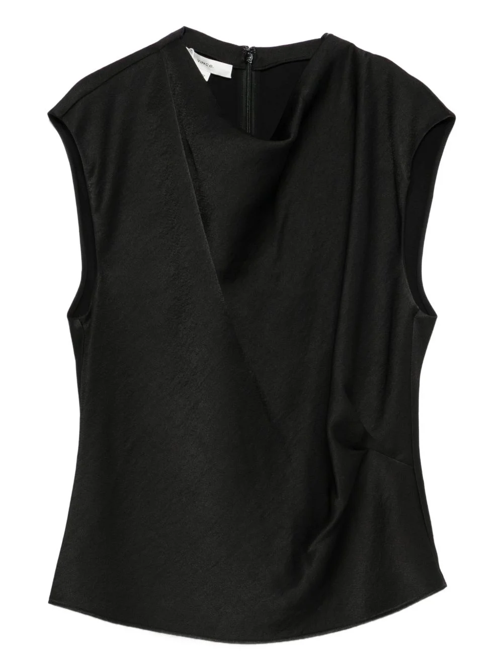 sleeveless blouse Highlights - Black - Sleeveless - Draped detail - Rear zip fastening Imported Composition Polyester 100% SIZE & FIT Model measurements Height 5 ft 9 in(1.76 m) Bust/Chest 31.49 in(80 cm) Hips 35.03 in(89 cm) Waist 24.8 in(63 cm) Washing instructions Read Manufacturer Guidelines