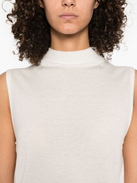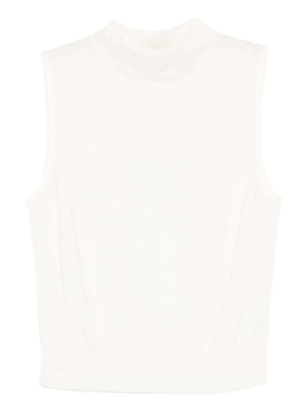 mock-neck top Highlights - White - Mock-neck - Sleeveless - Straight hem Imported Composition Wool 74%, Polyester 21%, Cashmere 5% SIZE & FIT Model measurements Height 5 ft 10 in(1.79 m) Bust/Chest 31.88 in(81 cm) Hips 35.43 in(90 cm) Waist 23.62 in(60 cm) Washing instructions Hand Wash