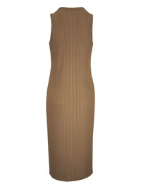 ribbed button-front dress Highlights - Light brown - Ribbed texture - Sleeveless - V-neck - Button fastening - Midi length Imported Composition Cotton 46%, Viscose 30%, Polyester 22%, Spandex/Elastane 2% Washing instructions Machine Wash