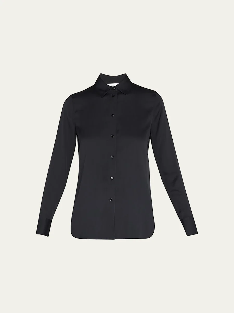 Slim-Fit Long-Sleeve Stretch-Silk Blouse