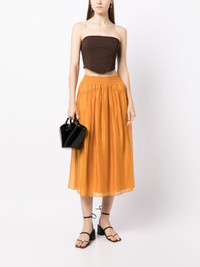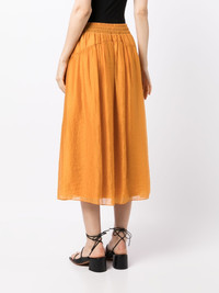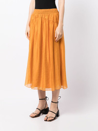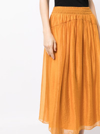 smocked-waist high-waisted skirt Highlights - Marigold orange - Tencel™ lyocell - Smocked waist - High-waisted - Elasticated waistband - Concealed rear zip fastening - Two side inset pockets - Flared hem Made in United States Composition TENCEL™ Lyocell (LENZING) 70%, Nylon 30% SIZE & FIT Model measurements Height 5 ft 11 in(1.8 m) Bust/Chest 28.34 in(72 cm) Hips 35.43 in(90 cm) Waist 23.62 in(60 cm) Measurement HIPS 40.15 in(102 cm) LENGTH 32.28 in(82 cm) WAIST 26.77 in(68 cm) FittingInformation This midi-length skirt is intended to be worn high on the waist The elasticated waist allows for a comfortable fit Made from a lightweight non-stretch fabric This piece fits true to size – take your usual size Washing instructions Machine Wash