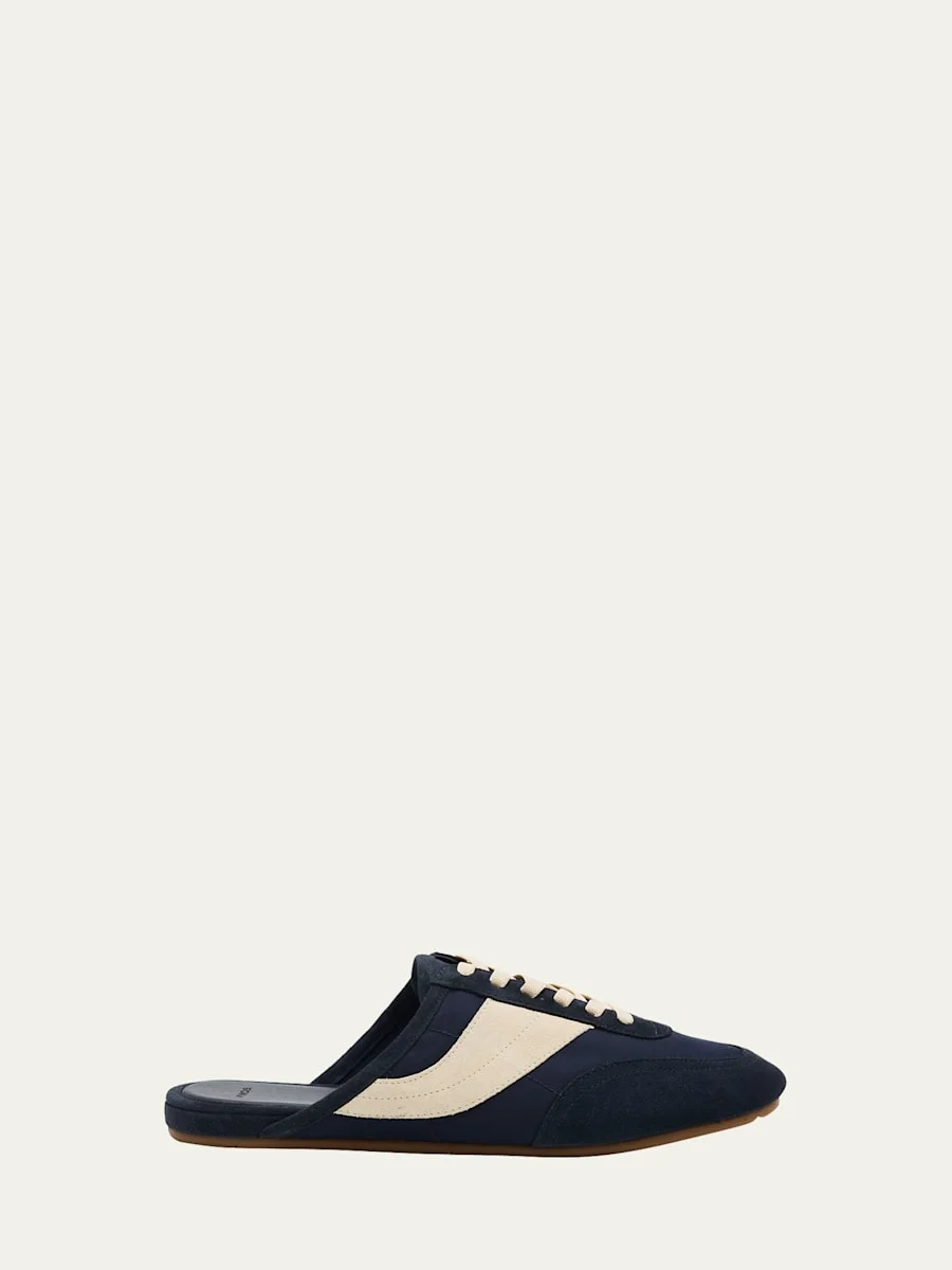 The "Solstice" sneakerstyle mules by Vince are designed in suede with smooth leather accents Flat heel Reinforced round toe Laceup vamp Easy slide style Rubber outsole Made in Italy