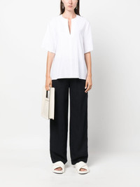 split-neck short-sleeved blouse