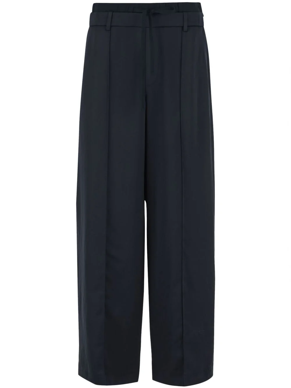 straight-leg trousers Highlights - Navy blue - Belt loops - Drawstring fastening - Straight leg Imported Composition Polyester 54%, Viscose 28%, Flax 18%