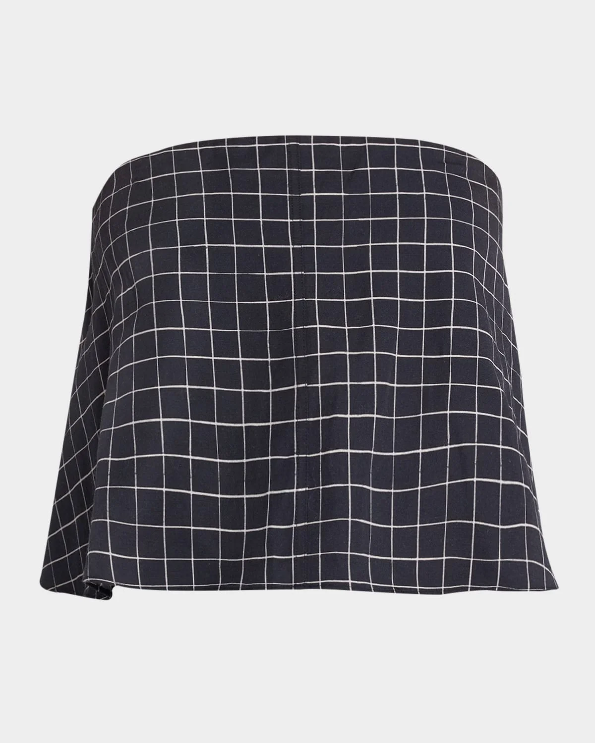 - Vince trellis plaid top featuring a self-tie back - Strapless neckline - Sleeveless - Swing silhouette - Hem sits at the hip - Invisible back zip - Cotton/rayon/cellulose acetate/linen - Lining: Cotton - Hand wash or dry clean - Imported