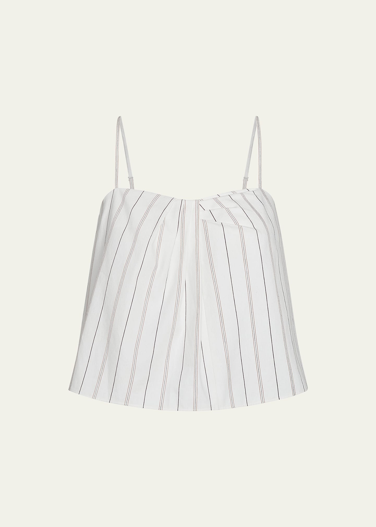 Vince striped top finished with a draped front Strapless neckline Removable, adjustable spaghetti straps Loose fit Hem sits at the hip Invisible back zip Cotton/polyester Hand wash or dry clean Imported Online Inquiries: BGS21_T6L31| Store Inquiries: #5001044