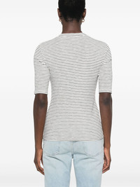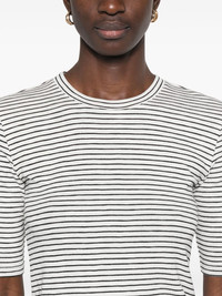 striped T-shirt Highlights - Black - Crew neck - Short sleeves - Straight hem Imported Composition Cotton 60%, Modal 40% SIZE & FIT Model measurements Height 5 ft 10 in(1.77 m) Bust/Chest 32.28 in(82 cm) Hips 35.03 in(89 cm) Waist 25.19 in(64 cm) FittingInformation Designed for a slim fit that sits just away from the body offering a close yet comfortable fit Made from a midweight non-stretch fabric, this piece offers minimal elasticity when worn