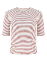 striped crew-neck T-shirt Highlights - Red - Horizontal stripes - Crew neck - Half-lenght sleeves Imported Composition Cotton 60%, Modal 40% SIZE & FIT FittingInformation Designed for a slim fit that sits just away from the body offering a close yet comfortable fit Made from a midweight non-stretch fabric, this piece offers minimal elasticity when worn
