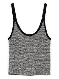 micro-striped vest Highlights - Dark blue - Scoop neck - Sleeveless Imported Composition Cotton 78%, Polyamide 21%, Spandex/Elastane 1% SIZE & FIT Model measurements Height 5 ft 10 in(1.77 m) Bust/Chest 30.31 in(77 cm) Hips 36.22 in(92 cm) Waist 24.8 in(63 cm) FittingInformation Designed for a slim fit that sits just away from the body offering a close yet comfortable fit Made with a lightweight knit, this piece offers some stretch Washing instructions Hand Wash