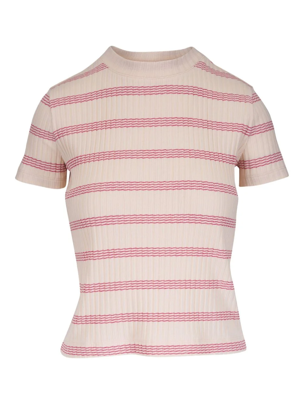 striped ribbed T-shirt Highlights - Oat - Horizontal stripes - Ribbed texture - Short sleeves - Round neck Made in United States Composition Cotton 94%, Spandex/Elastane 6% Washing instructions Dry Clean Only