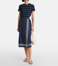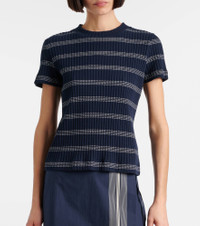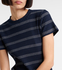 Ribbed-knit striped cotton-blend T-shirt