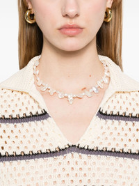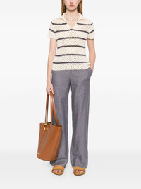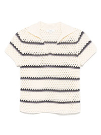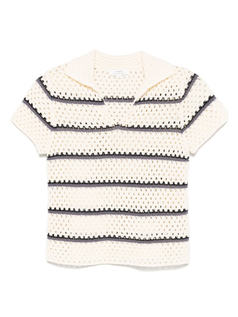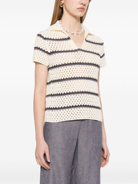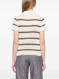 macrame striped top Highlights - Blush beige - Spread collar - Split neck - Short sleeves Imported SIZE & FIT Model measurements Height 5 ft 9 in(1.75 m) Bust/Chest 31.88 in(81 cm) Hips 34.64 in(88 cm) Waist 24.01 in(61 cm) FittingInformation Designed for a slim fit that sits just away from the body offering a close yet comfortable fit Made with a midweight knit, this piece offers some stretch
