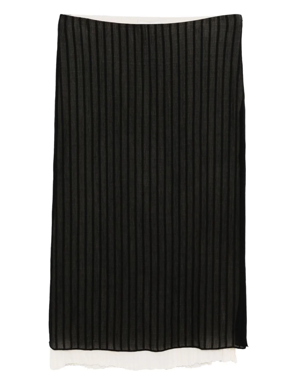 layered skirt Highlights - Black - Side zip fastening - Side slit Imported Composition Lining: Recycled Polyester 100% Outer: Viscose 100% SIZE & FIT Model measurements Height 5 ft 10 in(1.78 m) Bust/Chest 29.52 in(75 cm) Hips 34.25 in(87 cm) Waist 24.4 in(62 cm) FittingInformation This midi-length skirt is intended to be worn just below the waist The elasticated waist allows for a comfortable fit Made from a midweight non-stretch fabric Washing instructions Dry Clean Only