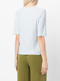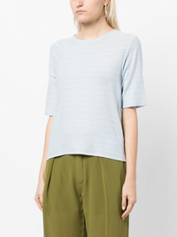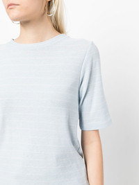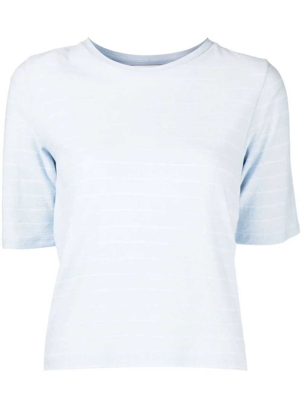 striped short-sleeve T-shirt sky blue/off white cotton jersey knit horizontal stripe print round neck short sleeves straight hem Imported Composition Body: Cotton 100% SIZE & FIT Model measurements Height 5 ft 9 in(1.76 m) Bust/Chest 31.1 in(79 cm) Hips 35.03 in(89 cm) Waist 24.4 in(62 cm) FittingInformation This piece fits true to size. We recommend you get your regular size Cut for a relaxed fit Made with a mid-weight fabric