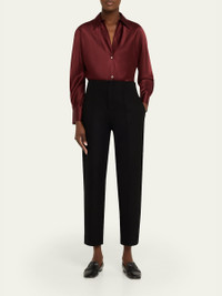 Crisply tailored for a flattering fit, these trousers by Vince feature vertical pintucks for a legelongating effect Approx. 28" inseam High rise Side seam and back welt pockets Cropped at the ankle Straight legs Hidden hook/zip fly Wool Dry clean Imported