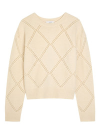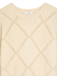 textured argyle sweater Highlights - Beige - Textured finish - Argyle-pattern - Open knit - Round-neck - Long-sleeves Imported Composition Fabric 100% Washing instructions Read Manufacturer Guidelines