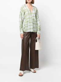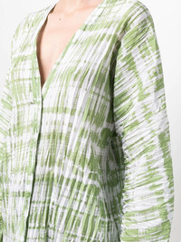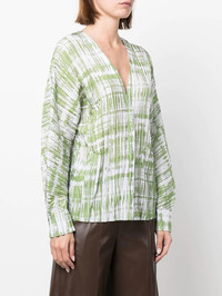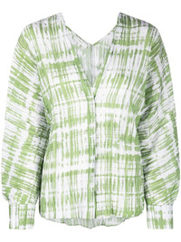 tie-dye long-sleeve silk blouse white/green silk tie-dye print V-neck long sleeves concealed front fastening Imported Composition Silk 100% SIZE & FIT Model measurements Height 5 ft 10 in(1.78 m) Bust/Chest 33.46 in(85 cm) Hips 36.22 in(92 cm) Waist 23.22 in(59 cm) FittingInformation This piece fits true to size. We recommend you get your regular size Cut for a loose fit Made with a lightweight non-stretch fabric Washing instructions Dry Clean Only