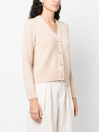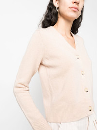 V-neck cashmere cardigan Highlights - Light beige - Cashmere - Knitted construction - V-neck - Front button fastening - Long sleeves - Ribbed cuffs and hem - Straight hem Imported Composition Cashmere 100% SIZE & FIT Model measurements Height 5 ft 9 in(1.75 m) Bust/Chest 33.07 in(84 cm) Hips 35.03 in(89 cm) Waist 24.01 in(61 cm) FittingInformation Designed for a relaxed fit, this piece allows for comfort and movement when worn Made with a midweight knit, this piece offers some stretch This piece fits true to size – take your usual size Measurement CHEST 32.28 in(82 cm) LENGTH 20.07 in(51 cm) SLEEVE LENGTH 21.65 in(55 cm)