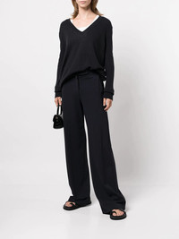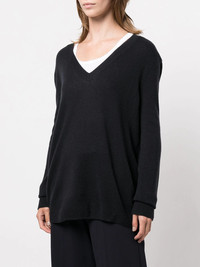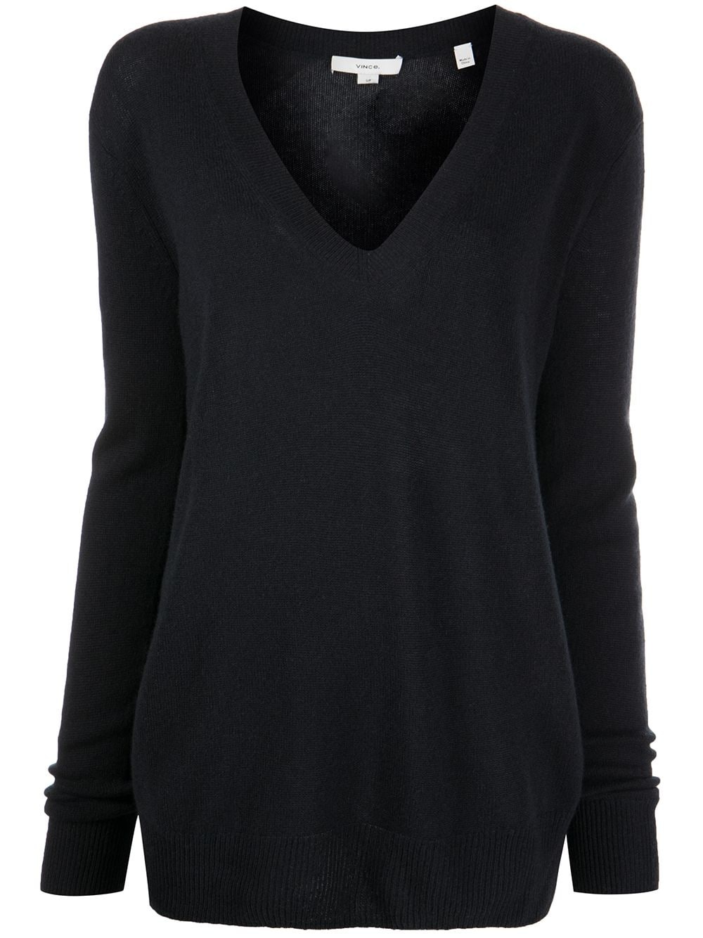 V-neck knitted top from VINCE featuring fine knit, V-neck, long sleeves, straight hem, deep marine blue and cashmere. Highlights - Deep marine blue - Cashmere - Fine knit - V-neck - Long sleeves - Straight hem Imported Composition Cashmere 100%