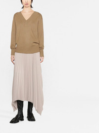 V-neck draped-sleeve jumper beige wool-cashmere blend V-neck long sleeves ribbed hem Imported Composition Wool 70%, Cashmere 30% SIZE & FIT Model measurements Height 5 ft 11 in(1.8 m) Bust/Chest 31.49 in(80 cm) Hips 35.43 in(90 cm) Waist 25.19 in(64 cm) FittingInformation This piece fits true to size. We recommend you get your regular size Cut for a loose fit Made with a mid-weight fabric Washing instructions Hand Wash