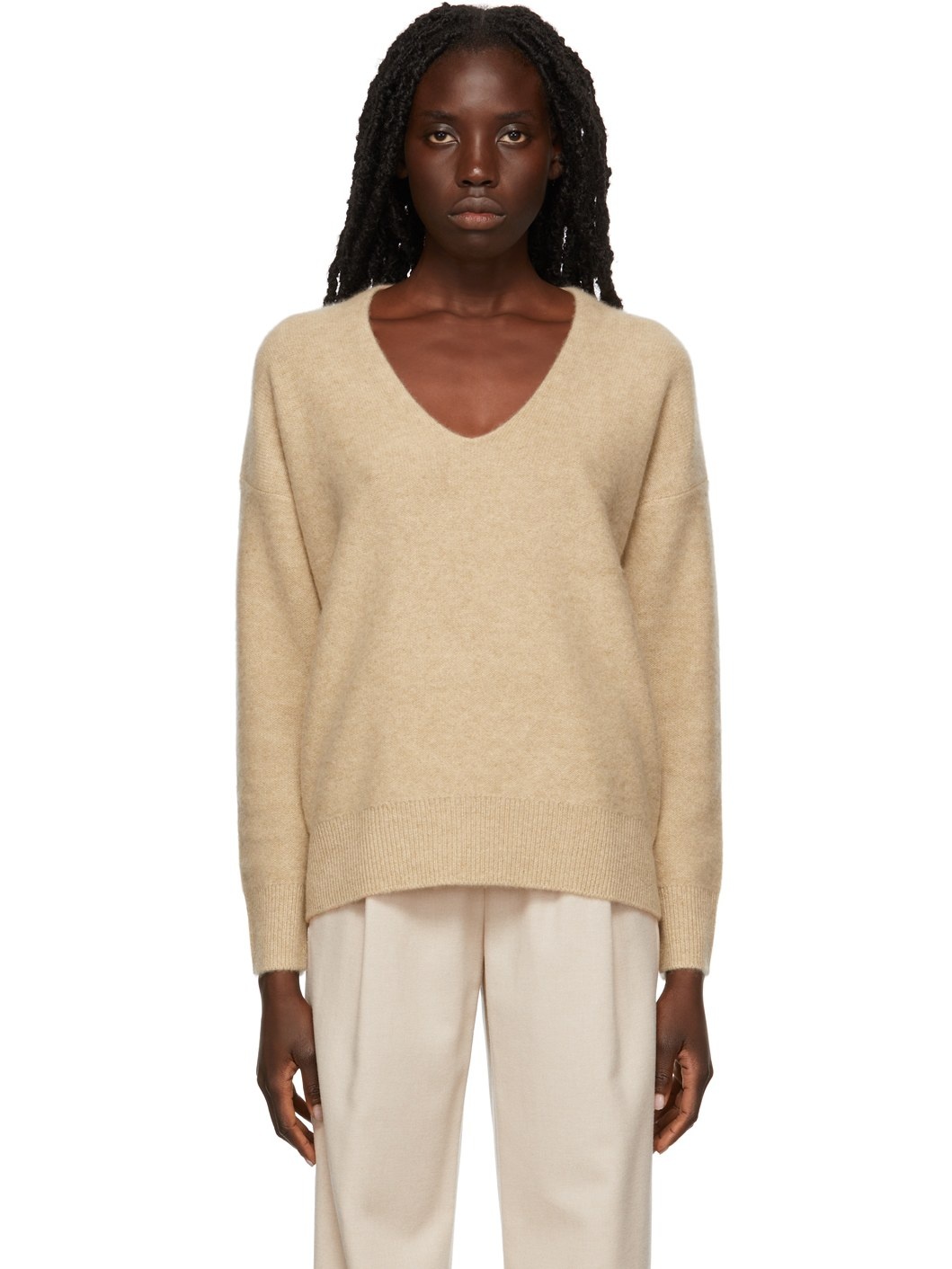 Tan Relaxed Pullover V-Neck Sweater