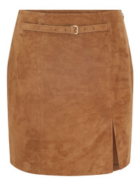 belted suede skirt Highlights - Brown - Suede - Side zip fastening - Straight hem - Side slit - Belt detail Imported Composition Suede 100% Washing instructions Read Manufacturer Guidelines