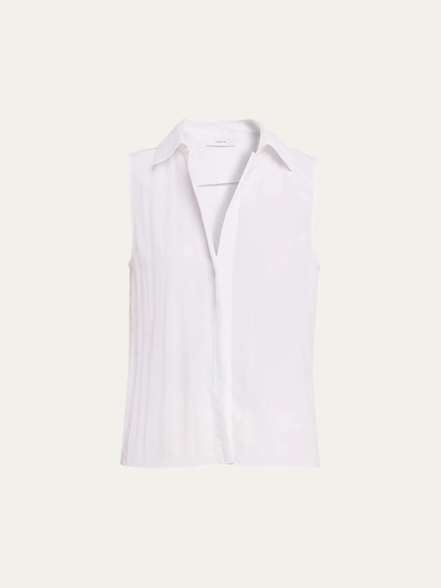 Vince lightweight shirt Point collar Sleeveless Loose, boxy fit Hem falls to the hip Concealed button-front Lyocell/nylon/polyamide/wool Hand wash or dry clean Imported Online Inquiries: BGS21_T6TYJ| Store Inquiries: #5034973