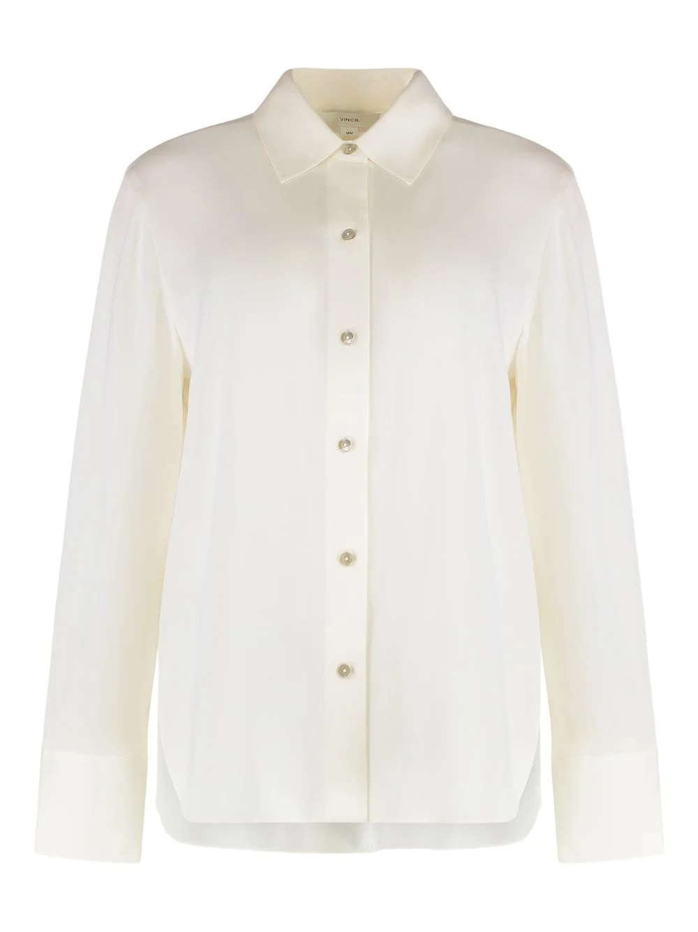 buttoned-collared shirt Highlights - Off white - Button closure - Collared - Long sleeves - Buttoned cuffs Imported Composition Silk 92%, Spandex/Elastane 8% Washing instructions Hand Wash