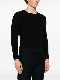 contrasting-trim sweater Highlights - Navy blue - Crew neck - Long raglan sleeves - Straight hem Imported Composition Cotton 64%, Nylon 32%, Spandex/Elastane 4% Washing instructions Hand Wash
