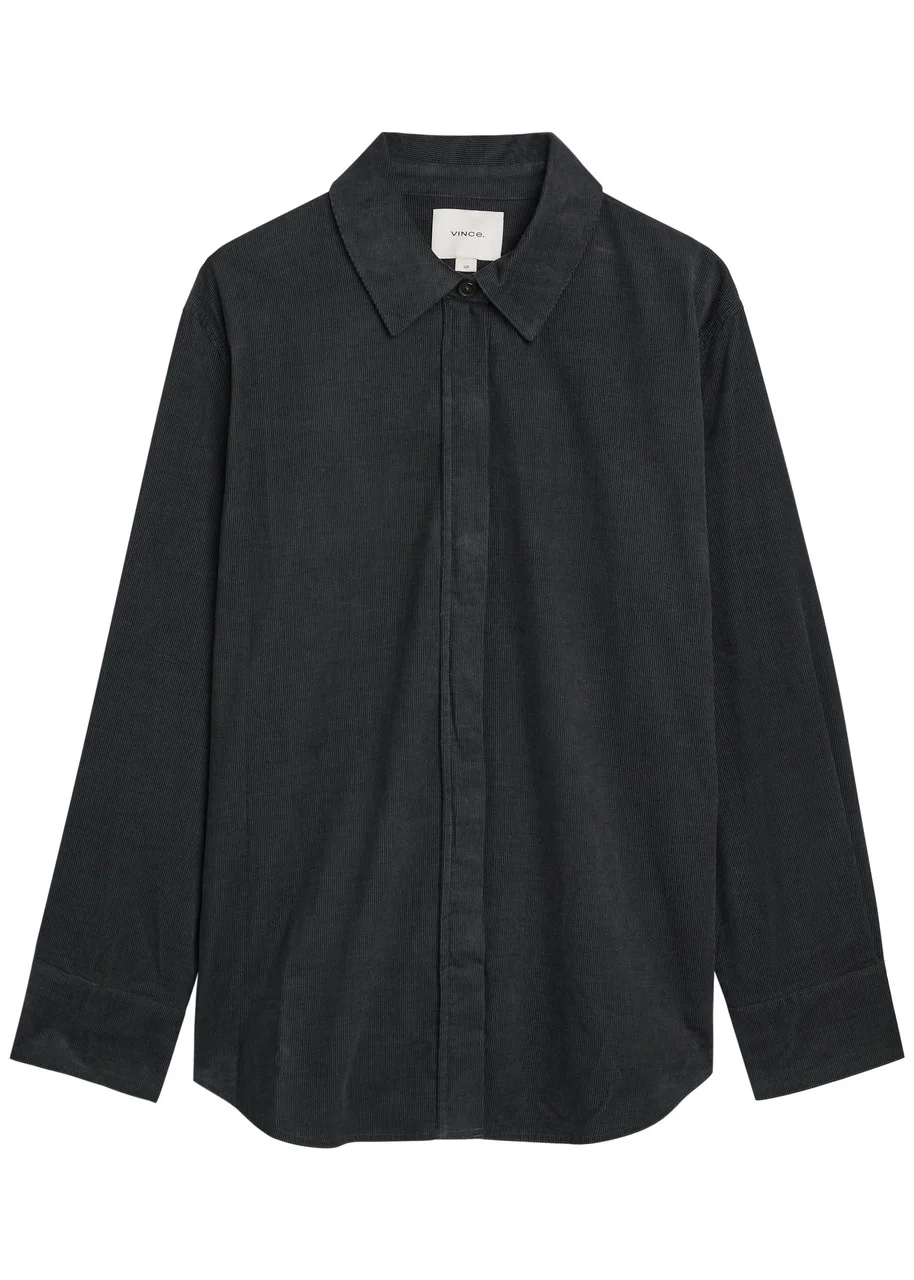 Info & Care Vince;corduroy;shirt Button-fastening cuffs, tab at back,;curved hem Partially concealed button fastenings through front 100% cotton Machine wash Size & Fit Length shoulder to hem: 28 inches/ 71cm Midweight Relaxed fit Model is 5'9"/ 175cm and wears a size small
