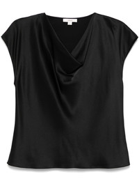 silk cowl-neck blouse Highlights - Black - Short sleeves - Satin weave Made in United States Composition Silk 100% SIZE & FIT Model measurements Height 5 ft 11 in(1.8 m) Bust/Chest 31.49 in(80 cm) Hips 35.82 in(91 cm) Waist 24.8 in(63 cm) Measurement CHEST 36.22 in(92 cm) LENGTH 22.04 in(56 cm) WAIST 37 in(94 cm) FittingInformation Designed for a relaxed fit, this piece allows for comfort and movement when worn Made from a lightweight non-stretch fabric