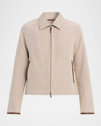 Vince cottonblend jacket finished with faux leather (polyester) trim Point collar Long sleeves Classic fit Hem sits at the hip Twoway zipfront Cotton/polyester Hand wash Imported