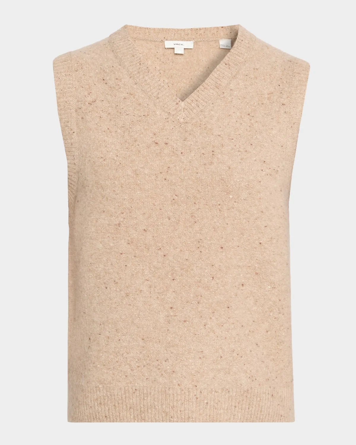 Knit from plush cashmere, this sweater vest by Vince is distinguished by a textural Donegal finish Approx. 21"L from shoulder to hem High V neckline Sleeveless Relaxed fit Hip length Pullover style Cashmere Hand wash cold or dry clean, reshape and lay flat to dry Imported