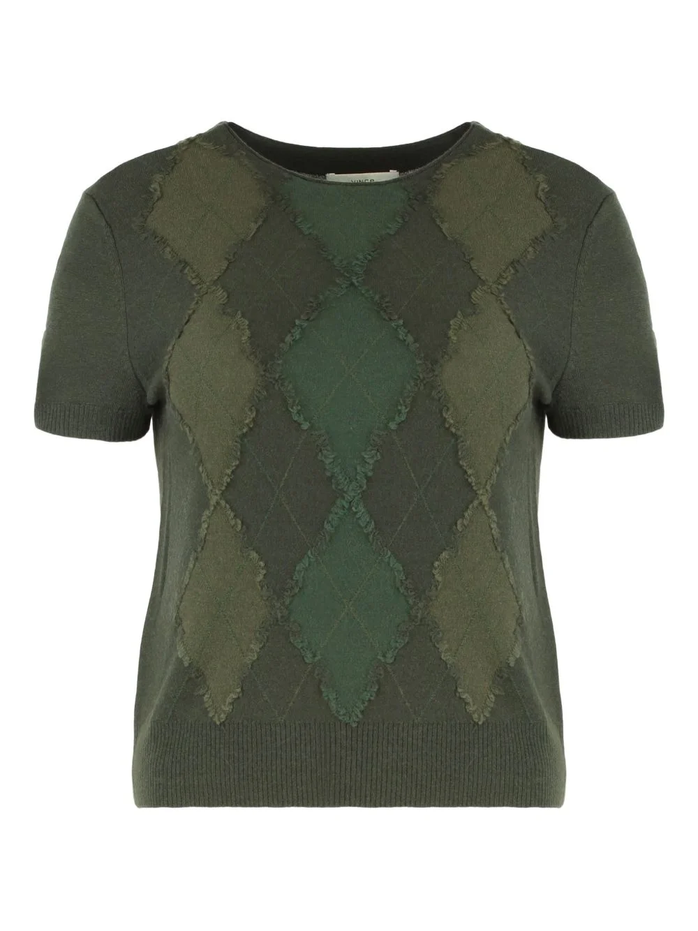 diamond-pattern short-sleeve top Highlights - Green - Diamond pattern - Short sleeves - Round neck Imported Composition Wool 56%, Polyvinyl Acetate (PVA) 25%, Polyester 15%, Cashmere 4% Washing instructions Read Manufacturer Guidelines
