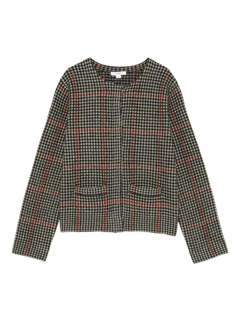 checked jacket Highlights - Black - Checked pattern - Long sleeves - Patch pockets - Front concealed fastening - Round neck Imported Composition Wool 70%, Cashmere 30% SIZE & FIT Model measurements Height 5 ft 10 in(1.78 m) Bust/Chest 31.49 in(80 cm) Hips 37 in(94 cm) Waist 23.62 in(60 cm) Washing instructions Read Manufacturer Guidelines