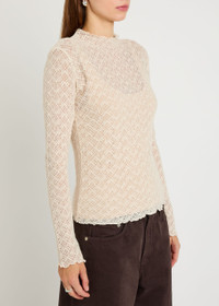 Info & Care Vince lace top Mock-neck, scalloped trims, detachable camisole lining Slips on 61% cotton, 38% nylon, 1% spandex; lining: 95% lyocell, 5% spandex; Hand wash Size & Fit Length shoulder to hem: 23 inches/ 58.5cm Midweight Slim fit Model is 5'9"/ 175cm and wears a size small