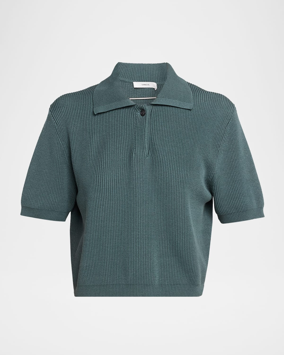- Vince ribbed polo top in a luxurious silk-blend - Point collar; button-placket - Short sleeves - Classic fit - Hem sits at the hip - Silk/cotton - Dry clean or hand wash - Imported