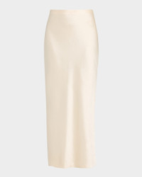 Biascut satin maxi skirt by Vince. High rise Skirt falls straight from hip to hem Full length; center back vent Invisible back zip Polyester Dry clean or machine wash cold Imported