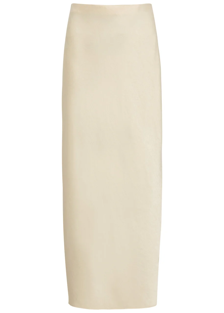 Info & Care Vince satin skirt Elasticated waistband, back vent Concealed zip fastening at back 55% polyester, 45% recycled polyester Machine wash Size & Fit Length waist to hem: 43 inches/ 109.5cm Midweight Loose fit,;straight-cut style Model is 5'9"/ 175cm and wears a size;US4