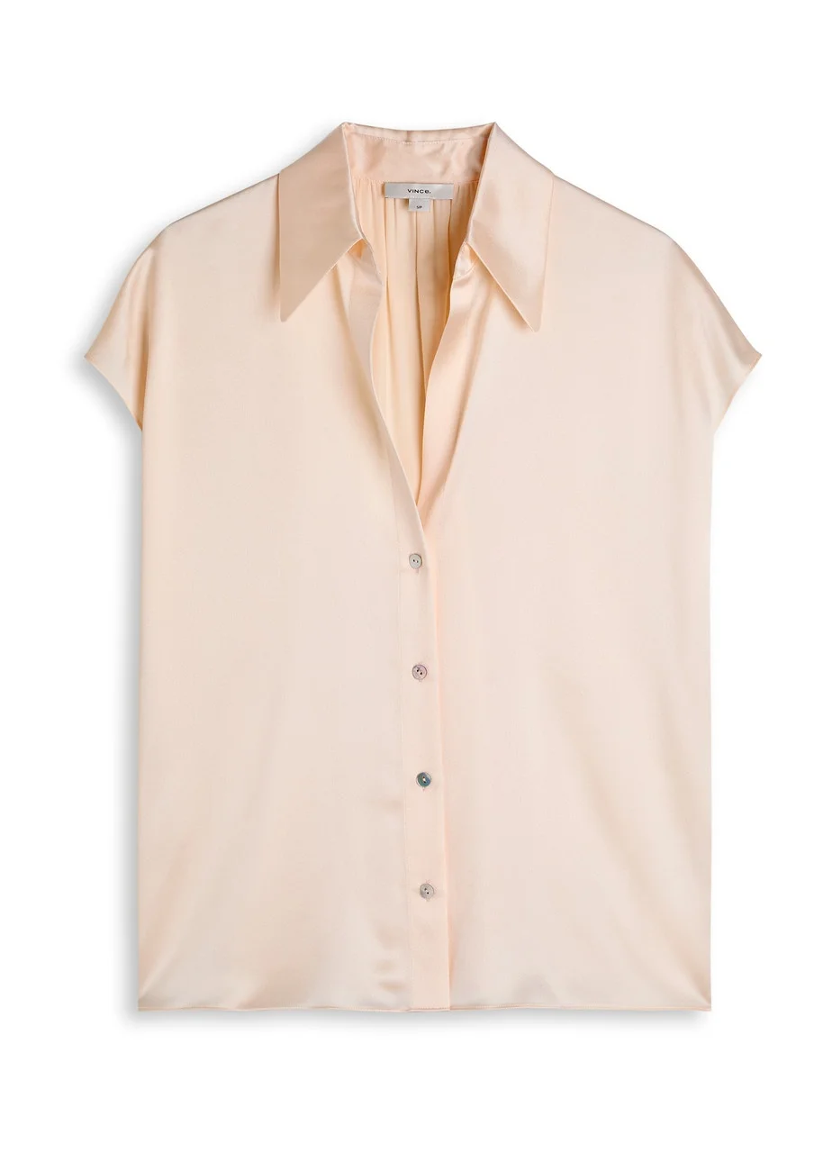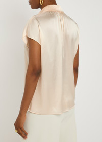 Info & Care Vince silk-satin shirt Dolman sleeves, gathered details at back neck Button fastenings through front 100% silk Hand wash Size & Fit Length shoulder to hem: 25 inches/ 63.5cm Midweight Relaxed fit Model is 5'10"/ 178cm and wears a size small