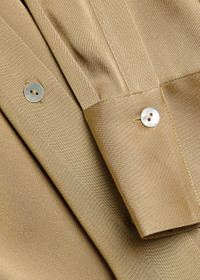 Info & Care Vince stretch silk-blend shirt Button-fastening cuffs, darts through;back waist, curved hem, longer back hem Button fastenings through front 55% silk, 28% viscose, 7% spandex Hand wash Size & Fit Length shoulder to hem: 25.5 inches/ 65cm; back: 27 inches/ 68.5cm Midweight Loose fit Model is 5'9"/ 175cm and wears a size small
